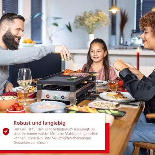 Vorab: mit Ober UND Unterhitze! Perfekt wenn man beim Raclette auch Flammkuchen oder Pizza zubereiten möchte. Idealo next Price 219€. Bei Amazon gibt es auch die kleinere Variante für 4 Personen für 137€ (idealo next Price 150€)