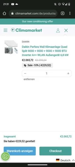 ***Vergleichspreise habe ich über den deutschen Zulieferer Klimondo erstellt. Letzter Screenshot im Deal***