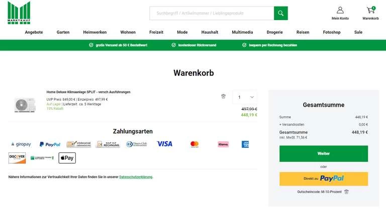 Es ist jetzt mein dritter Deal innerhalb kürzester Zeit bezüglich Klimaanlagen. Aber der Preis ist schon der Hammer. Wir reden hier von einer 12000er BTU mit 5 Meter Quick Connect-Kabel und Wifi-Steuerung per App. Damit ist die „Ausführung M“ gemeint. Gebt den Gutscheincode ein um auf den Preis zu landen.
