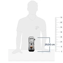 Die Menge des Getränks ist einstellbar, einzelner Espresso von 20 bis 60 ml, doppelter Espresso von 60 bis 125 ml. Außerdem gibt es eine praktische automatische Entkalkungsanzeige.