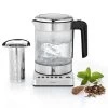 Der Glaswasserkocher WK 1506 von TecTro (1.850 – 2.200 Watt) hat einem Fassungsvermögen von ca. 1,7 Liter, LED-Beleuchtung und Überhitzungsschutz. Der 360 °-Sockel, das verdeckte Heizelement und der KSL-Controller runden die Vorteile dieses Kabellosen Wasserkochers ab.