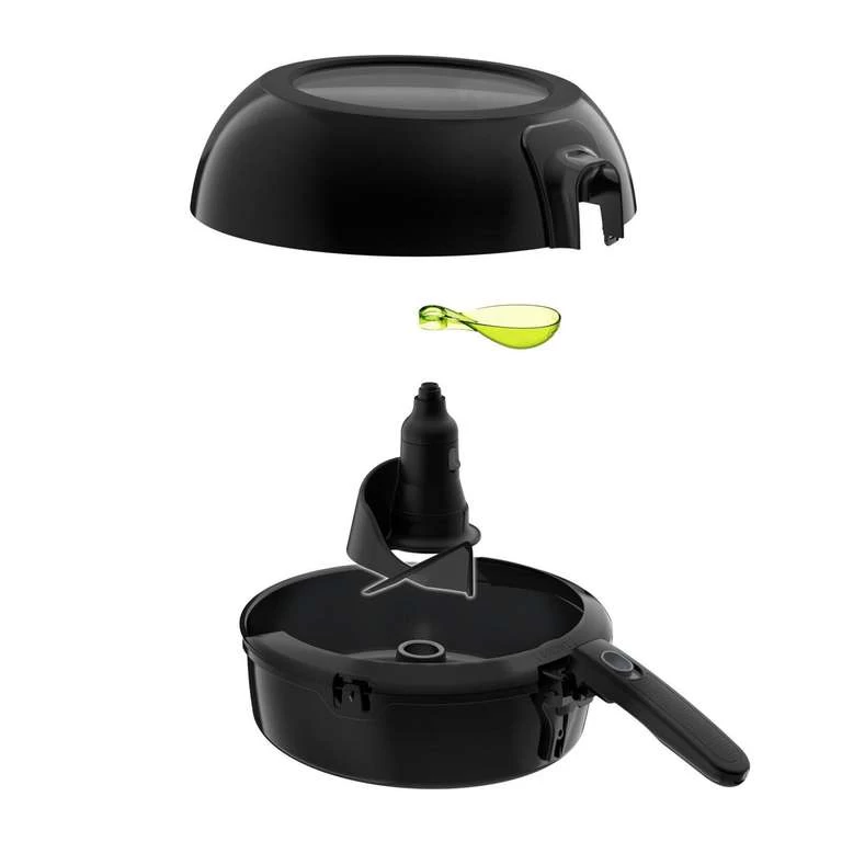 - Automatisches Rühren und Umwälzen ohne Anbrennen,gleichmäßiges Verteilen des wenigen Öls. Ohne Schütteln, ohne Dabeistehen.