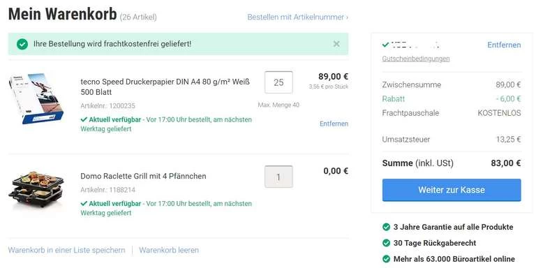 25x 500 Blatt abzgl. Newsletter-Gutschein = 83 Euro inkl. Versand